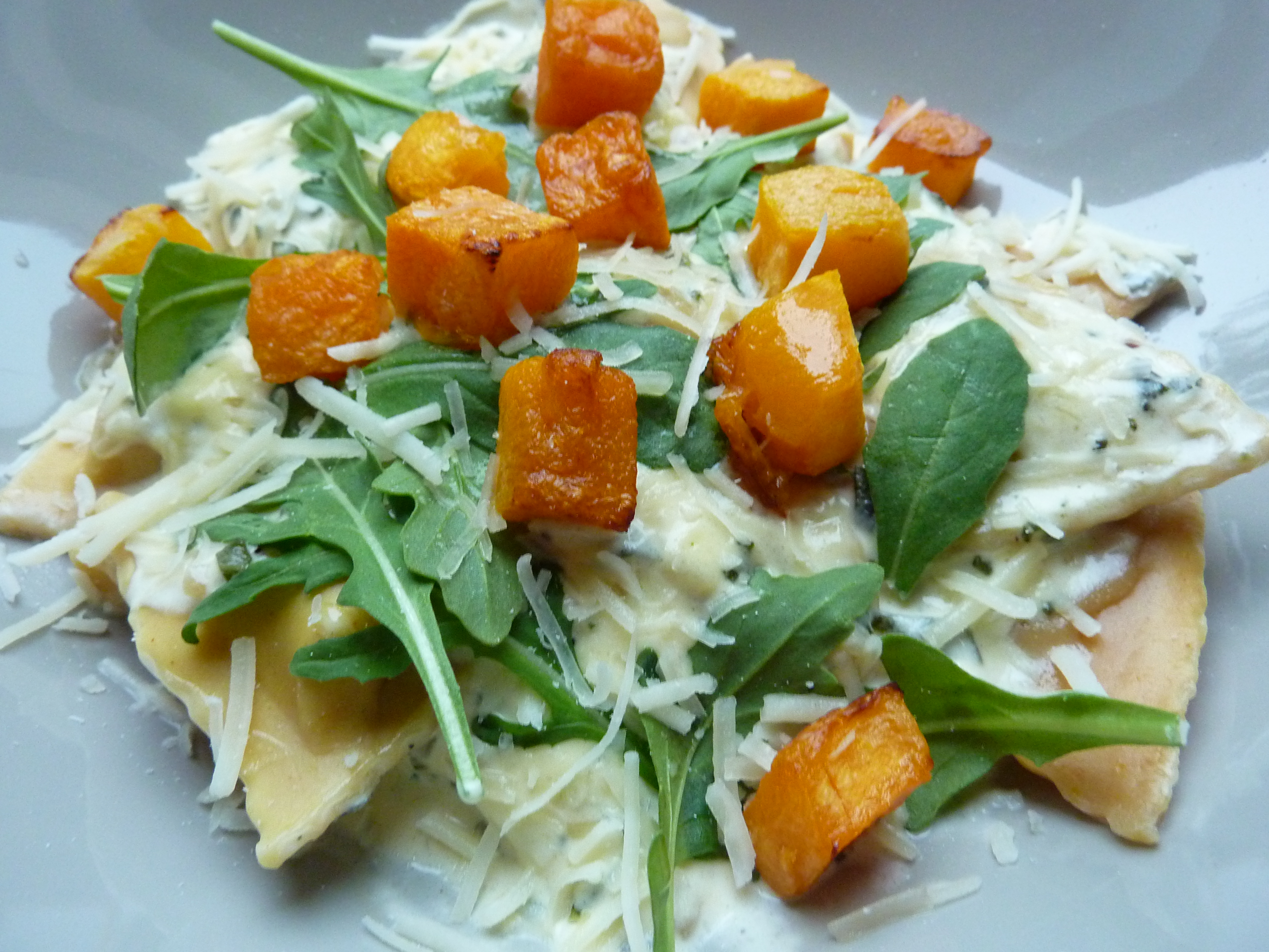 Butternut Squash Ravioli with Walnut Cream Sauce